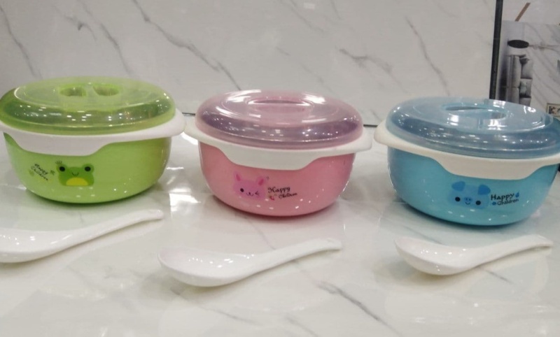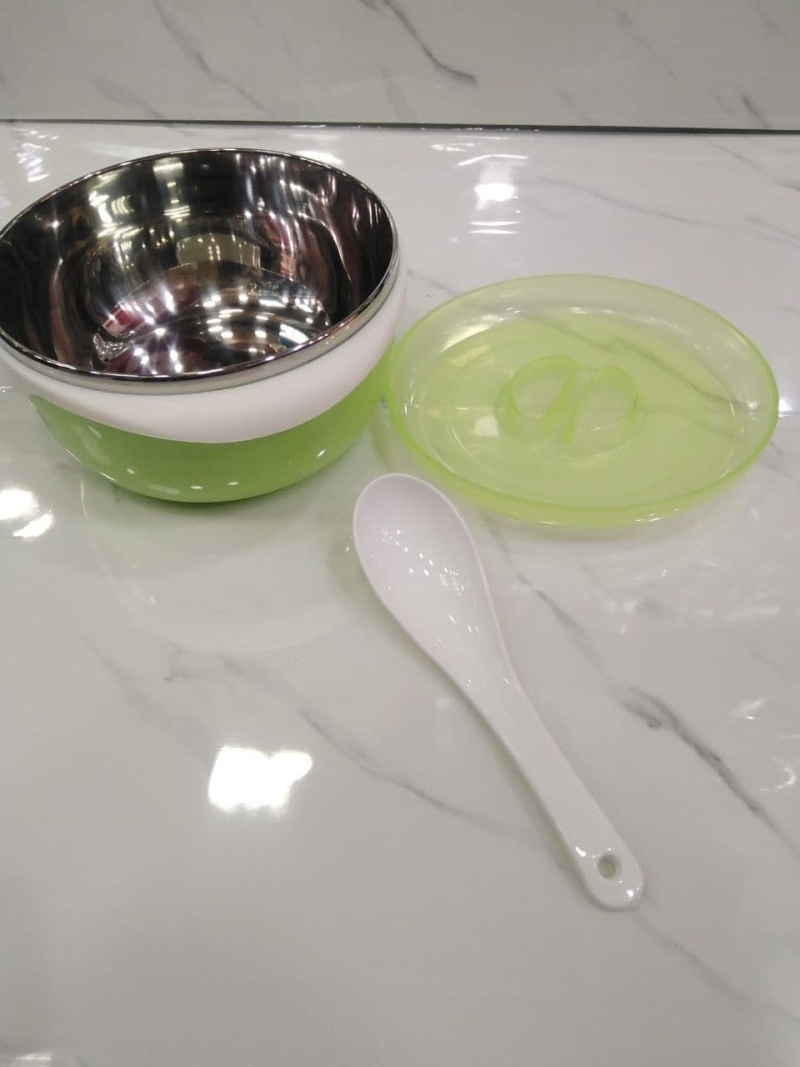 طبق اطفال ولانش بوكس استانليس من الداخل للاحتفاظ بالحراره ... مزود بغطاء محكم الغلق بالبخار من الاعلى استانليس 304 ... مزوده بمعلقه الوان بناتي وولادي مقاس 13 سم ارتفاع 7 سم